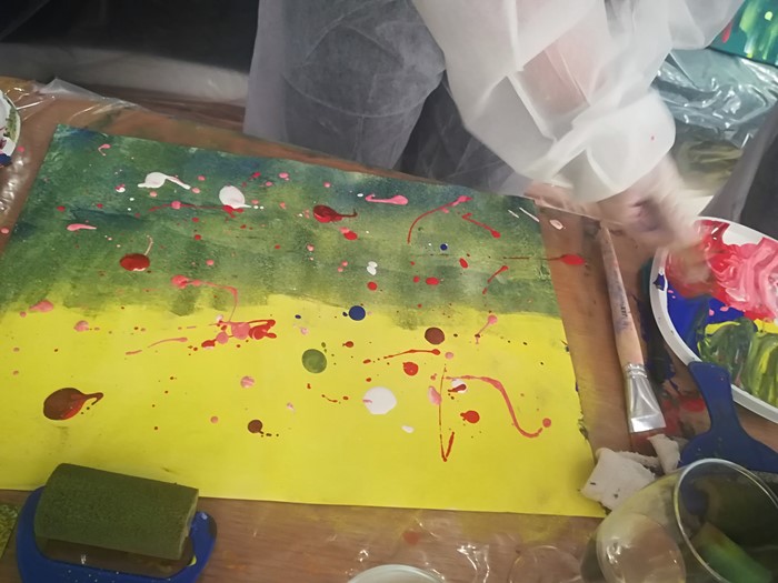 During these sessions we use anything from acrylic paint, watercolours, collage to balloons and hammers!